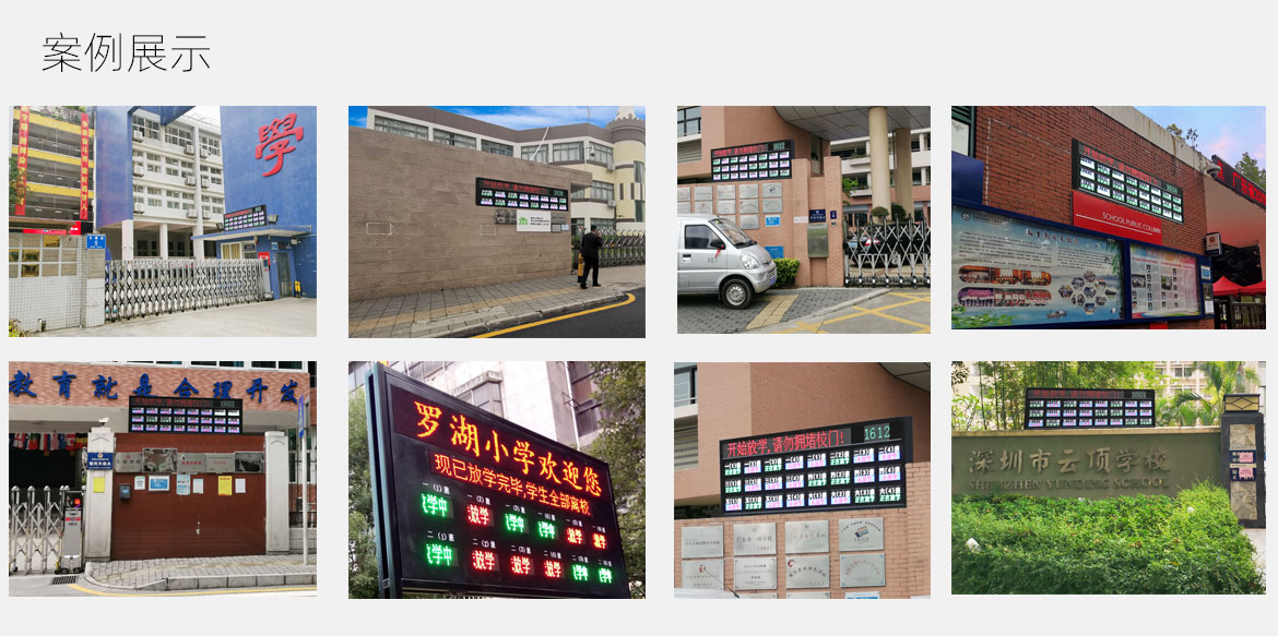 戶外放學信息LED顯示屏實時播放每個班級當前的放學信息,家長知道了孩子放學的準確時間,等待減少了,心情變好了,與學校的矛盾自然就沒有了,家校關系更和諧,學校發展更美好,這不正是我們共同期待的嗎?